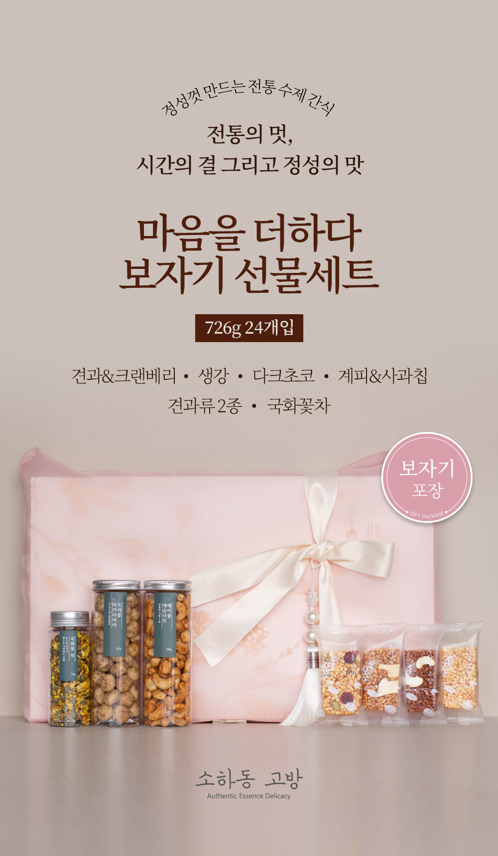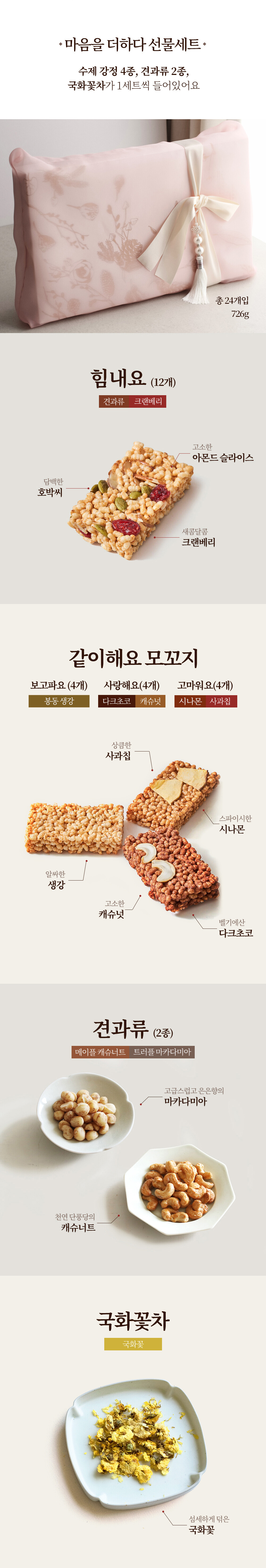 [소하동 고방] 마음을 더하다2+노리개선물포장 726g 전통 수제 강정 4가지 맛, 견과류 2종 꽃차 1종 다과 선물세트