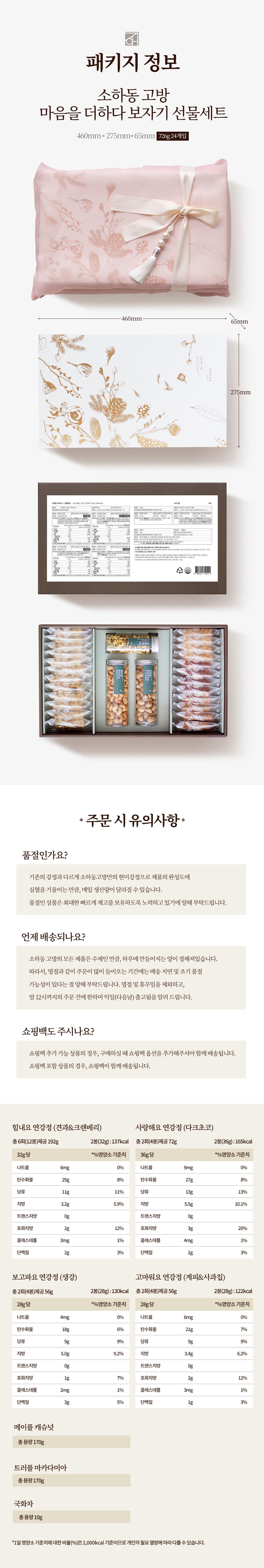 포장 불량 혹은 모양에 예쁘지 않은 것은 여러분에게 맛보시라고 넣어 드리고 있습니다. 하지만 덤은 덤일뿐, 필수는 아닙니다. 하나라도 더 챙겨드리고 싶은 것이 소하동 고방의 마음이기는 하나, 명절과 같은 특수한 기간에는 그 마음을 챙겨드릴 수가 없을 수도 있습니다. 양해 바랍니다.