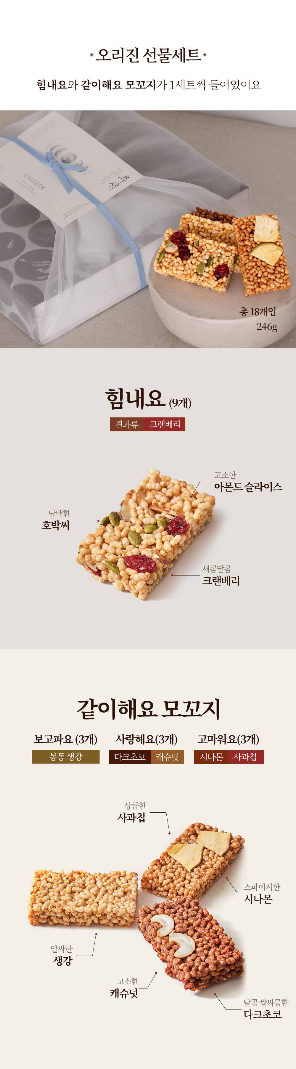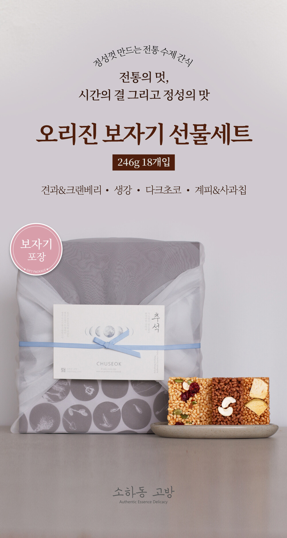[소하동 고방] 오리진+보자기 포장 246g 견과, 봉동 생강, 다크 초콜렛, 시나몬 4가지 맛