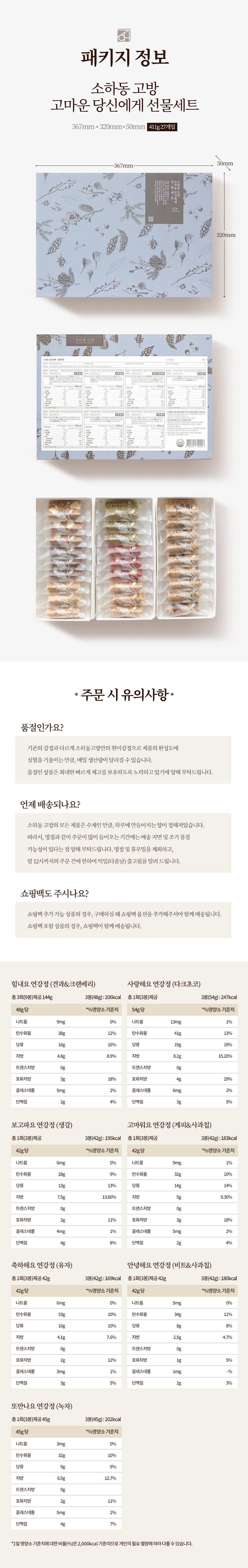 포장 불량 혹은 모양에 예쁘지 않은 것은 여러분에게 맛보시라고 넣어 드리고 있습니다. 하지만 덤은 덤일뿐, 필수는 아닙니다. 하나라도 더 챙겨드리고 싶은 것이 소하동 고방의 마음이기는 하나, 명절과 같은 특수한 기간에는 그 마음을 챙겨드릴 수가 없을 수도 있습니다. 양해 바랍니다.